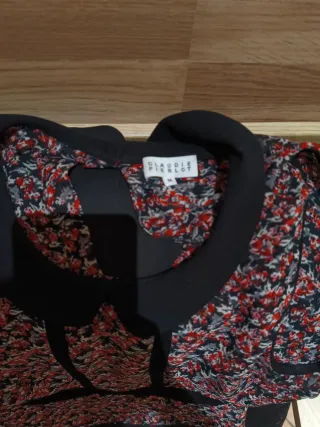 Camisa con un estampado floral vibrante y un elegante cuello Peter Pan. - Diseño sin mangas. - Detalles de ribete negro. - Corte entallado.