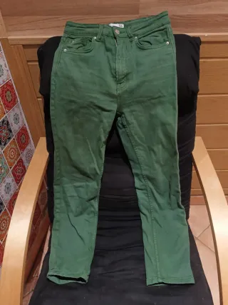 Pantalones de la marca Stradivarius en color verde. - Talla S / 36 / 8. - Diseño moderno y cómodo.