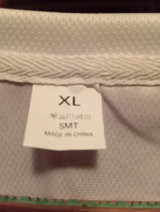 Camiseta de talla XL, fabricada en China. - Etiqueta con símbolos de cuidado. - Marca SMT.