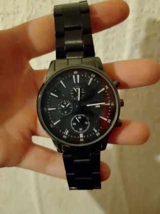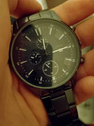Reloj con un diseño moderno y sofisticado. - Correa de metal. - Esfera oscura con detalles plateados. - Resistente al agua.