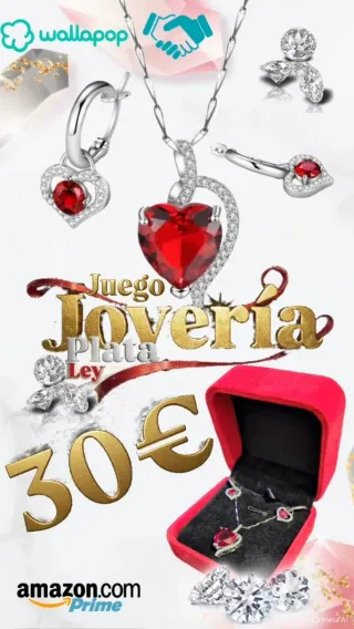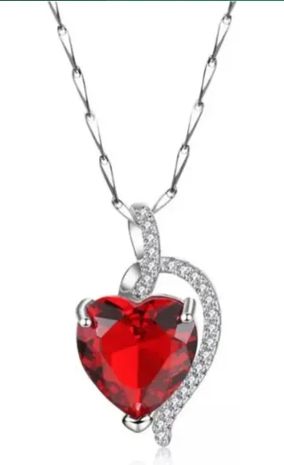 Conjunto de joyería de plata de Ley con un diseño de corazón un cristal rojo elegante en el que viene incluida una caja de calidad completamente nueva sin utilización solo exposición ideal para eventos o regalo de aniversario. - Colgante de corazón rojo con lazo con incrustación de cristal. - Pendientes a juego. - Caja roja para regalo.