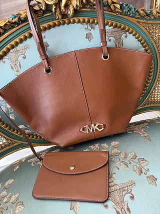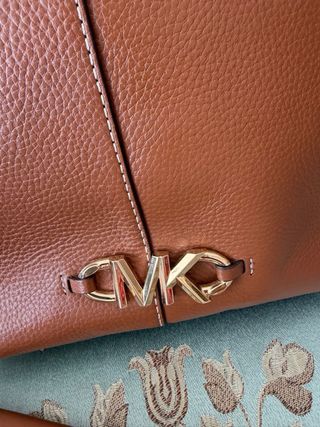 Bolso de piel Michael Kors en color naranja con detalles dorados. Un accesorio elegante y práctico. - Fabricado en piel original. - Medidas aproximadas: 26x16 cm.