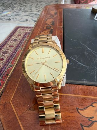 Elegante reloj de pulsera Michael Kors. - Diseño en tono dorado. - Correa metálica. - Esfera clara con detalles dorados.El reloj no lleva pila hay que cambiar la pila .