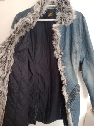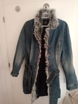 Abrigo vaquero largo con un diseño moderno y cálido. - Detalle de forro de pelo sintético en cuello y frontal. - Cinturón a juego para ajustar la cintura. - Cierre de botones. - Bolsillos laterales.
