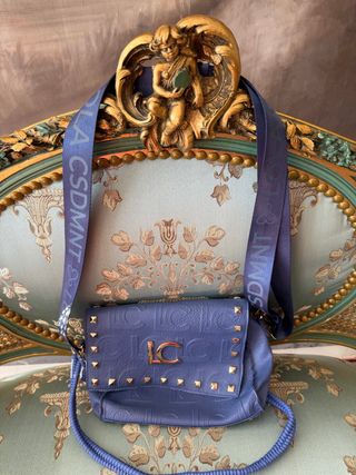 Bolso de la marca Lola Casademunt con un diseño moderno y elegante. - Color azul con detalles dorados. - Medidas aproximadas: 32x18 cm.