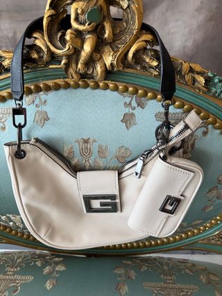 Bolso de la marca Guess con un diseño moderno y elegante. - Color beige con detalles en negro. - Incluye un pequeño monedero a juego. Orginal