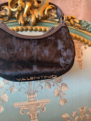 Elegante bolso de la marca Valentino. - Diseño en color negro con detalles dorados. - Logo metálico de la marca en la parte frontal.