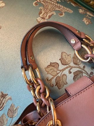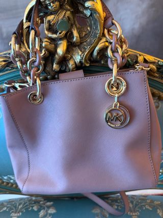 Bolso Michael Kors con un diseño elegante y moderno. Sus detalles dorados le dan un toque sofisticado. - Color: Rosa - Herrajes: Dorado - Tamaño aproximado: 25x20 cm