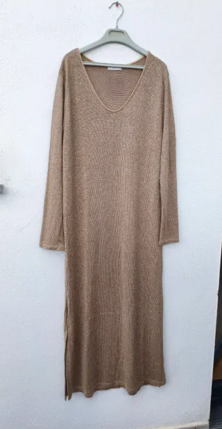Rebeca de punto en color beige con un diseño muy especial. - Adornos de flecos y anillas doradas en los bolsillos. - Cierre con cordón fino. - Tacto suave.