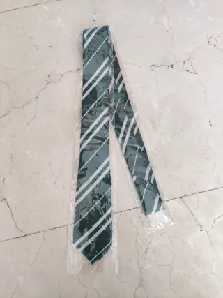 Corbata para disfraz de alumno ambientado en la casa Slytherin de Harry Potter. Sin usar y es 100% poliester.