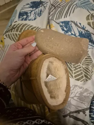 Botas UGG estilo mini plataforma, confeccionadas en piel, que no he podido devolver porque se me pasó la fecha. - Material exterior de piel. - Interior forrado de borreguito para mayor calidez. - Diseño de plataforma. - Color beige/marrón.