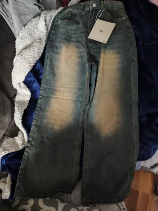 Vaqueros de estilo cargo con un diseño bicolor único, divididos en blanco y negro. - Diseño de dos tonos: mitad negra, mitad blanca. - Bolsillos cargo laterales. - Cintura con trabillas para cinturón. - Puños elásticos en los tobillos.