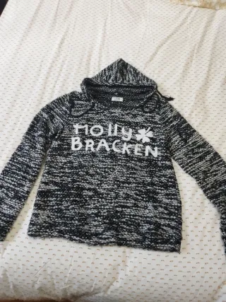 Jersey con capucha de la marca Molly Bracken. Diseño jaspeado en blanco y negro. Talla única, para una L queda ajustado y para una S quedaría flojo, depende de cómo te guste llevarlo - Diseño jaspeado. - Capucha. - Manga larga.