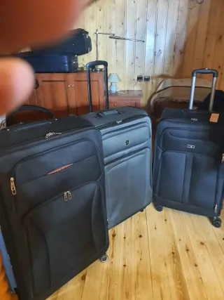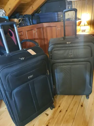 Conjunto de maletas listas para tu próximo viaje. - Maleta grande de color gris. - Maleta mediana de color negro.