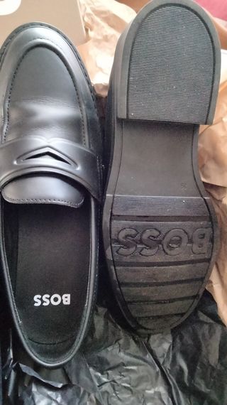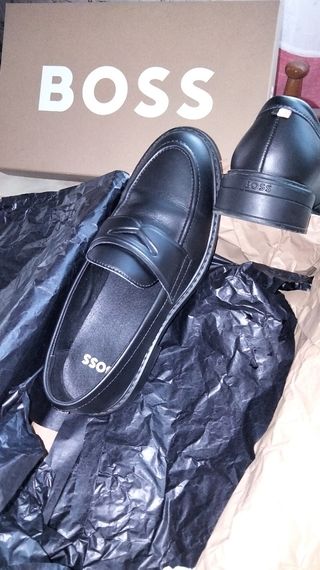 Vendo un par de mocasines BOSS. Son de color negro y tienen un diseño elegante y sofisticado, unisex. - Son de cuero. - Ideales para cualquier ocasión.