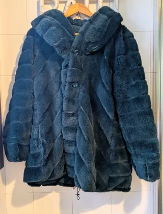 Abrigo de pelo sintético con un diseño reversible. - Tejido suave y cálido. - Cierre de botones. - Capucha integrada.