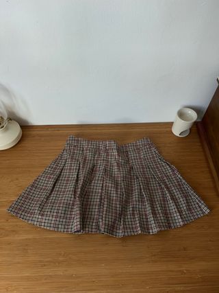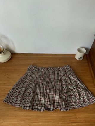 Falda corta con estampado de cuadros. - Diseño plisado.