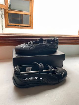 Zapatillas Puma SpeedCat Ballet en color negro. Un calzado cómodo y con un diseño deportivo. Están completamente nuevas, sin uso y en el embalage original. Se venden porque no se pueden devolver. - Cierre con tiras. - Detalle de logo Puma plateado. - Suela con tecnología Ortholite.
