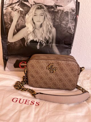 Bolso bandolera marca GUESS - Acabado con el monograma de la marca. - Cadena dorada. - Se incluye bolsa protectora y bolsa de tienda.