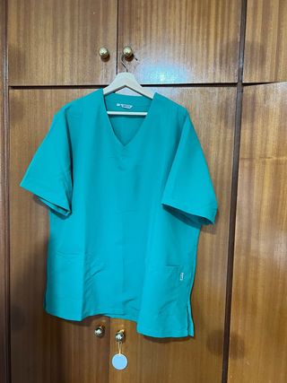 Pijama sanitario de manga corta con cuello en V y dos bolsillos frontales. - Color verde. - Marca Garys. - Talla XL