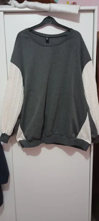 Suéter con un diseño moderno y cómodo. - Mangas de punto con trenzado. - Cuerpo principal en tejido liso.