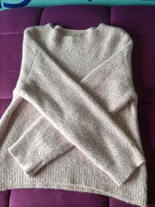 Jersey de punto suave en color rosa y gris. Es una prenda cómoda y versátil. - Tejido mullido y agradable al tacto. - Diseño de punto con textura. - Manga larga.