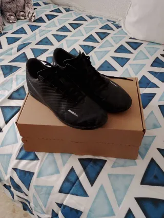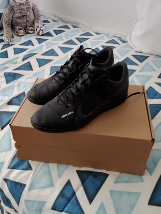 Botas de fútbol sala Nike Mercurial en color negro. Han sido usada par de veces ya que se me quedaron pequeñas, no están desgastadas las suelas ni la bota en si.