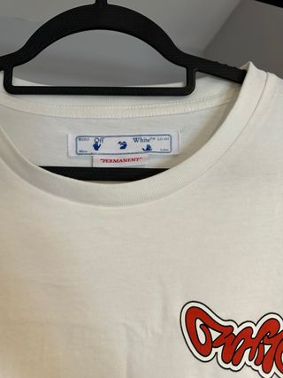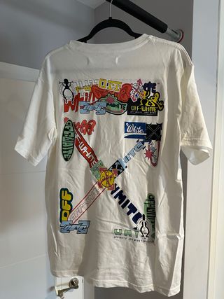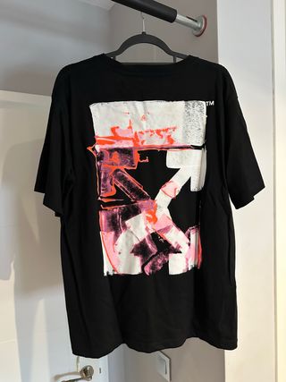 La vendo porque siempre me habquedado un poco pequeña, aunque ponga que su talla es XXL corresponde a una XL o a una L oversize. Camiseta Off-White con un diseño gráfico llamativo en la espalda. - Estampado frontal y trasero. - Cuello redondo. - Manga corta.