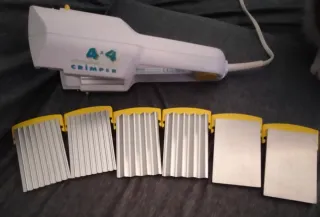 Plancha de pelo de la marca BaByliss en color blanco con detalles en amarillo. Con 3 placas para hacer distintos peinados.
