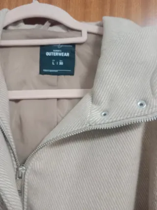 Chaquetón de Lefties en color beige, talla L. Un básico para tu armario. - Está en perfecto estado - Diseño con capucha. - Cierre de cremallera. - Bolsillos frontales.