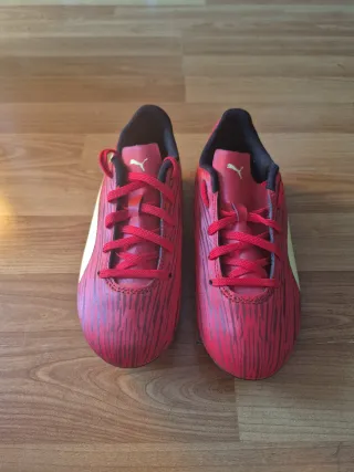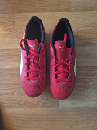 Se venden botas de fútbol Puma en perfecto estado vamos sin estrenar. - Color principal rojo con detalles amarillos. - Cierre con cordones rojos. - Logo de Puma en la lengüeta.