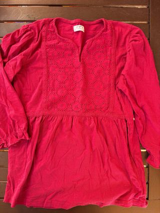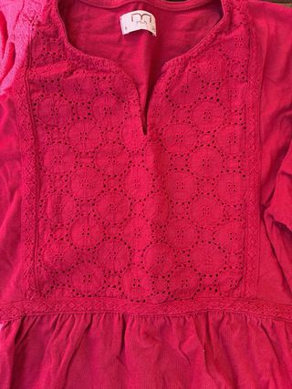 Camiseta de manga 3/4 con un bonito diseño. - Cuello en V. - Detalle de bordado y calados en la parte delantera. - Bajo con volante.