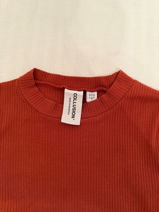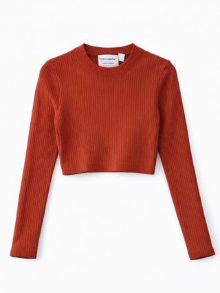 Jersey de punto acanalado con un bonito color teja. Es una prenda versátil y cómoda. - Tejido de punto acanalado. - Manga larga. - Corte cropped.