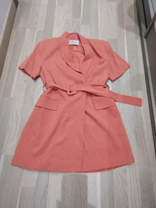 Vestido de Stradivarius en color naranja, muy bonito y con un diseño elegante. - Manga corta. - Cinturón a juego. - Bolsillos delanteros.