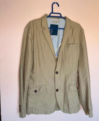 Chaqueta blazer lino Bershka beige