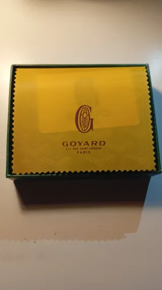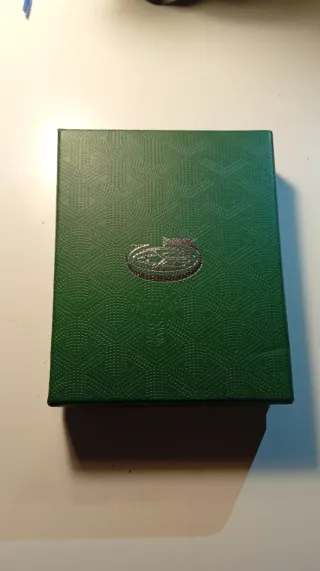 Elegante caja de la marca Goyard en color verde. - Diseño texturizado. - Detalle de logo en relieve. La caja desgastada