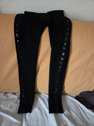 Pantalones largos de color negro con un detalle de lentejuelas a los lados. Es elástico - Diseño con lentejuelas. - Corte ajustado.