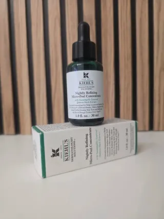 Concentrado micro-peeling nocturno de Kiehl's. Ayuda a renovar la piel. - Envase de vidrio verde con gotero. - Contenido: 30 ml. AGOTADO en la página de Kiehl's Nuevo sin usar