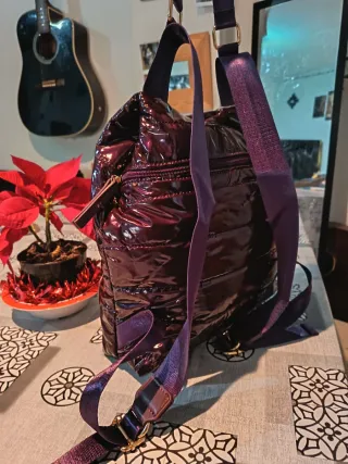 Mochila con un acabado brillante y diseño acolchado. - Cierre de cremallera. - Correa ajustable.