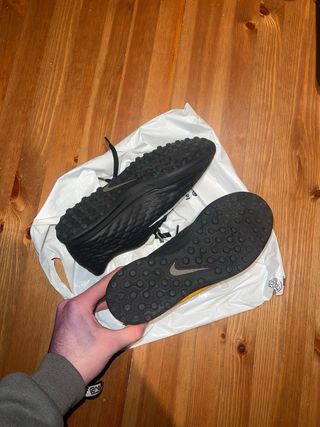 Botas de fútbol Nike con un diseño llamativo en amarillo y negro. - Parte superior con textura. - Cierre de cordones. - Suela para césped artificial. - Está en buen estado, son de muy buena calidad.