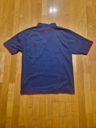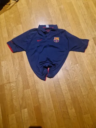 Polo de estilo vintage del FC Barcelona, con un diseño clásico en color azul marino y detalles en rojo. - Cuello tipo polo con botones. - Logo del FC Barcelona bordado en el pecho. - Logo de Nike bordado en el pecho.