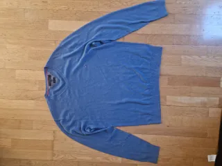 Conjunto de tres jerséis de punto para hombre. - Jersey de color morado con cuello pico marca gant, lana de oveja. - Jersey de color azul marino con cuello pico marca corte fiel. - Jersey de color azul claro con cuello pico marca massimo dutti. Tipo cashemere. NO HAGO ENVIOS.