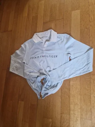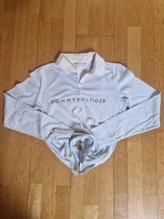 Polo de manga larga con cuello blanco y logo de Tommy Hilfiger. Pone M pero talla s - Color azul claro. - Cuello tipo polo. - Logo de la marca en el pecho.