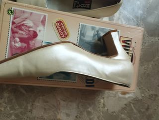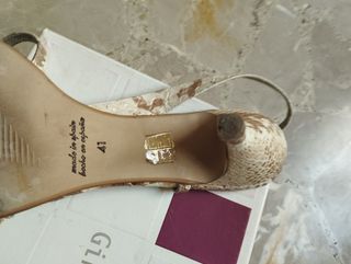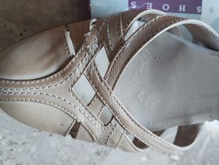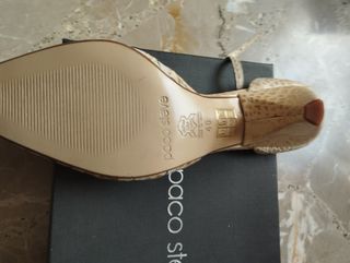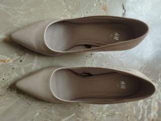 Elegantes zapatos de tacón con un diseño clásico. - Color beige y marrón. - Talla 40.