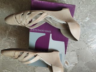 Elegantes zapatos de Tino Gonzalez en color beige. - Diseño abierto con tiras cruzadas. - Tacón bajo y cómodo. - Material exterior de piel.