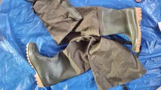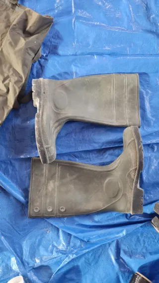 Botas de agua de goma en tono verde oliva. - Material de goma resistente. - Diseño alto para protección. - Suela con buen agarre.