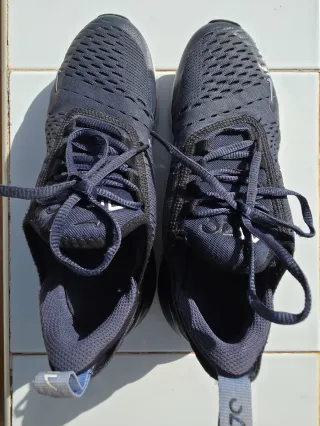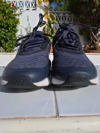 Vendo zapatillas Nike Air Max 270 de niño/a en buen estado. Talla EUR 36, color azul marino. Cómodas, ligeras y perfectas para uso diario. Tienen un desgaste normal pero están muy cuidadas. Entrega en mano o envío por Wallapop. ¡Buena oportunidad!