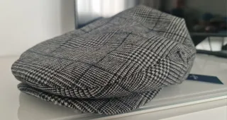Boina de la marca Hackett con un clásico estampado Príncipe de Gales. Talla M. - Diseño a cuadros en tonos grises. - Etiqueta de la marca visible.