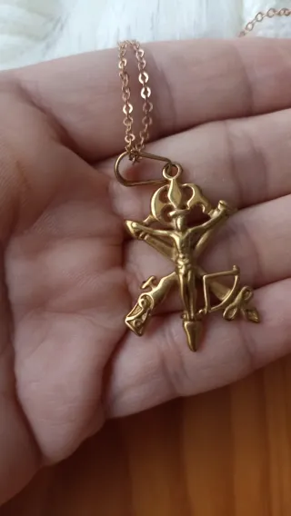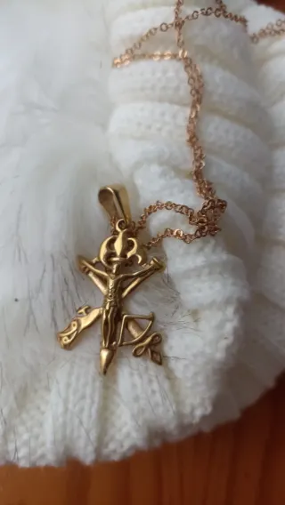 Colgante con la figura del Cristo de la Buena Muerte. - Diseño detallado. - Acabado dorado.