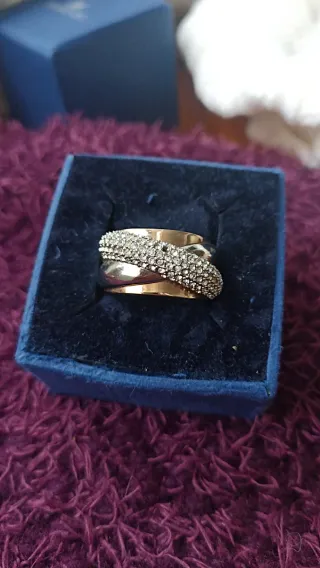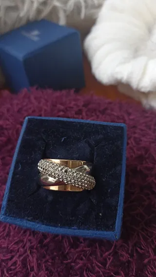 Elegante anillo solitario de Swarovski con un diseño delicado. - Tono rosa y plateado. - Detalles brillantes en la banda. Falta algunas circonitas Incluye la caja original